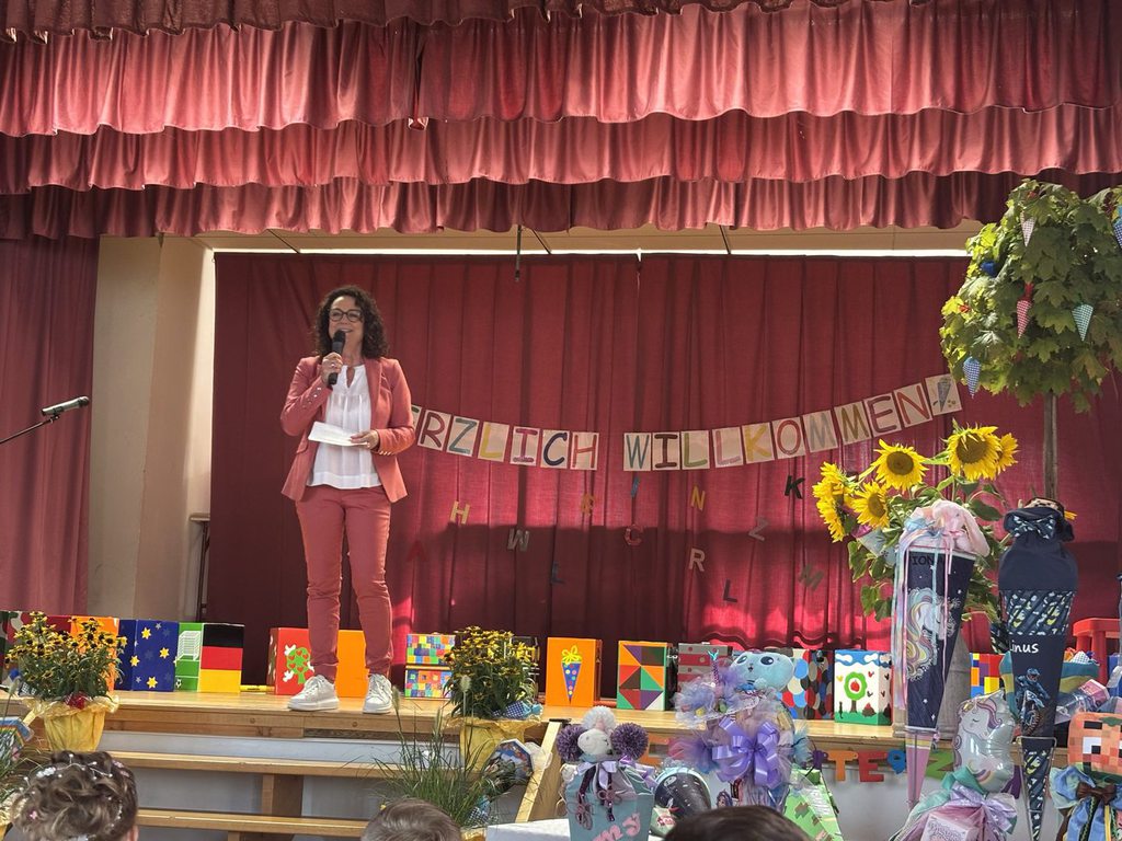 Dann war es endlich so weit: Die Kinder wurden in Gruppen nach vorn gerufen und bekamen von ihren Eltern oder Geschwistern die Zuckertüte überreicht. Neben all der Freude auf der einen Seite, berührte dieser besondere Moment, ein großer Meilenstein im Leben ihrer Kinder, die Eltern sehr.