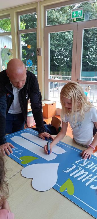 Schulkleidung ist cool! - Übergabe der Dalton-Buttons