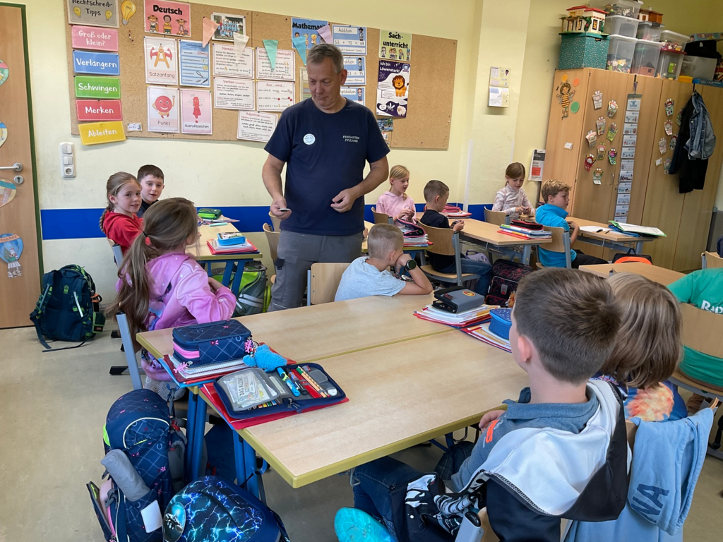 Sie übergaben uns Hefte zur Verkehrs- und Brandschutzerziehung, die als unterrichtsbegleitendes Lehrmaterial genutzt werden. Die Kinder haben sich sehr gefreut und waren nicht nur von den Heften