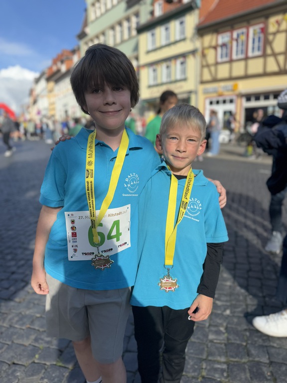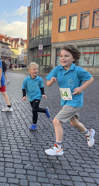 Zum 27. Mühlhäuser Altstadtlauf wurden unsere Schüler und Schülerinnen mit Sonnenschein und blauem Himmel begrüßt. Bei bestem Läuferwetter nahmen 48 Kinder aus unserer Schule - so viele wie noch