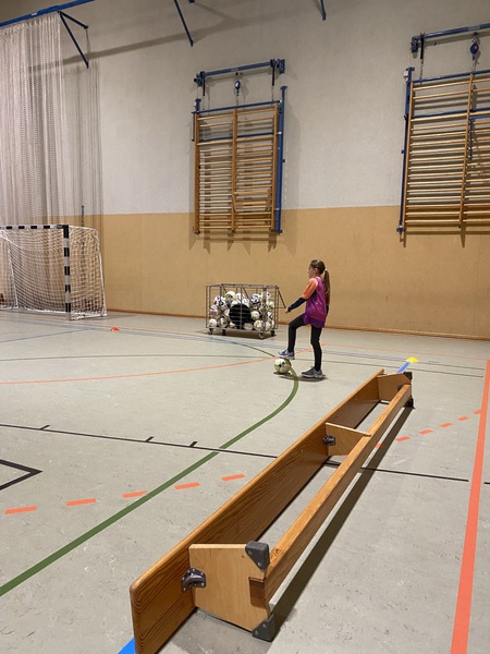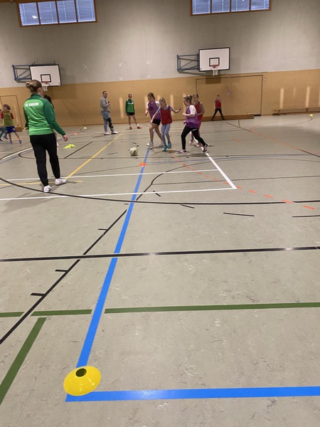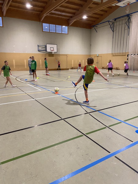 Nach einer kurzen Erwärmung mit dem Ball wurden Mannschaften gebildet, die anschließend in einem kleinen Turnier gegeneinander antraten und ihr Ballgefühl unter Beweis stellen konnten.