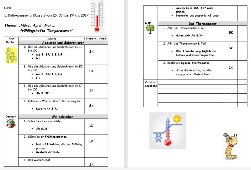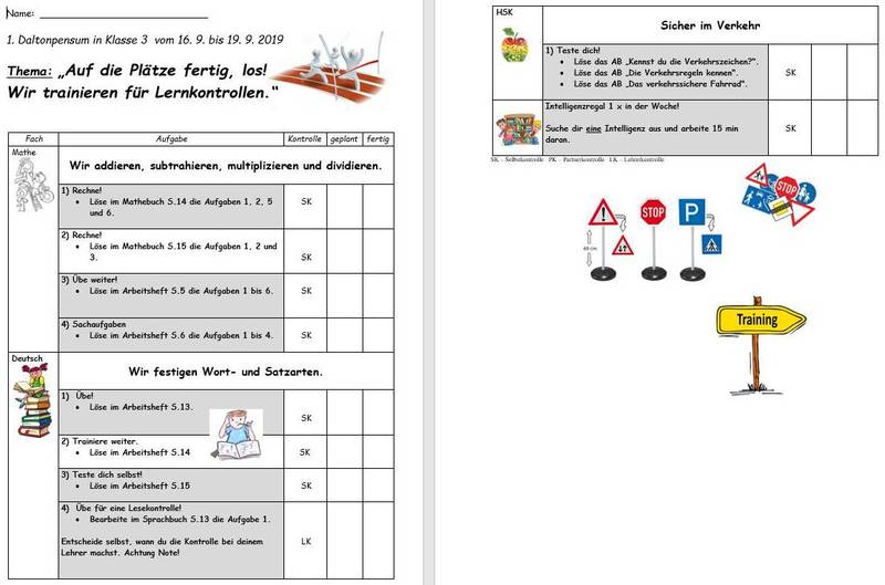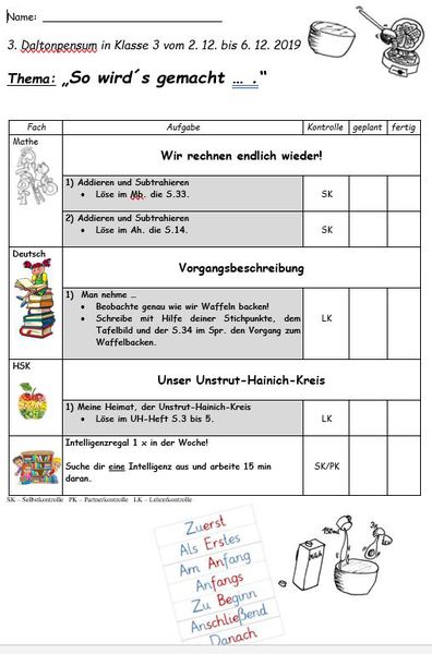 - Mehrere Male im Laufe eines Schuljahres werden Pläne (Pensen) von den Kindern eigenverantwortlich bearbeitet.